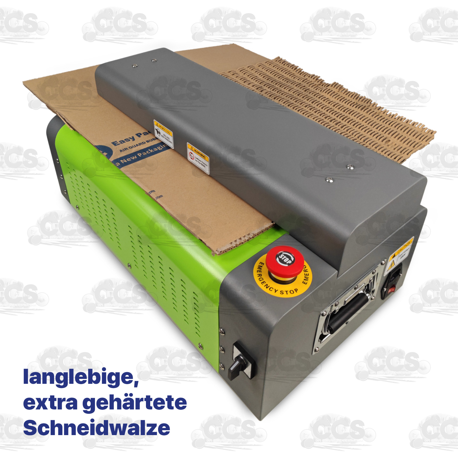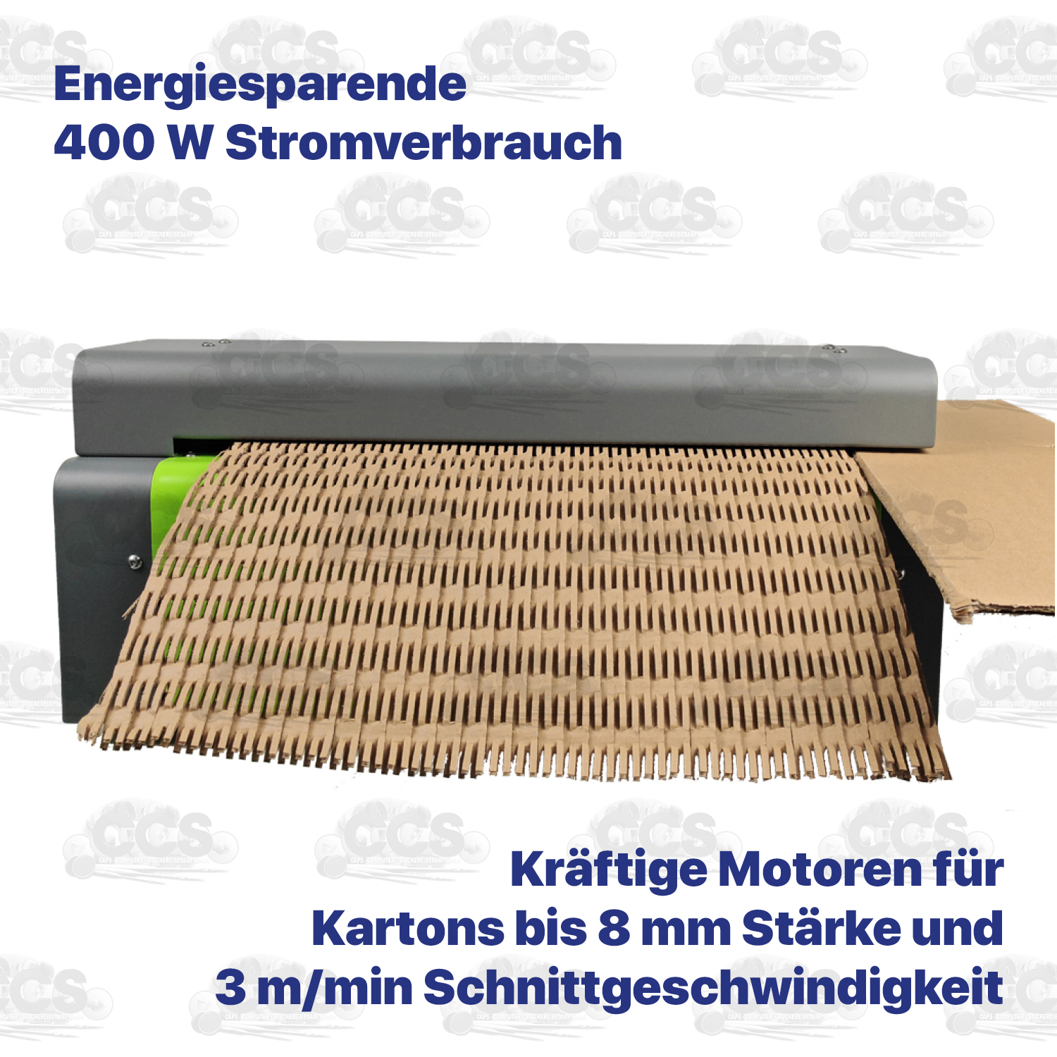 - Seitliches Messer zum präzisen Schneiden der Pappe auf die gewünschte Breite