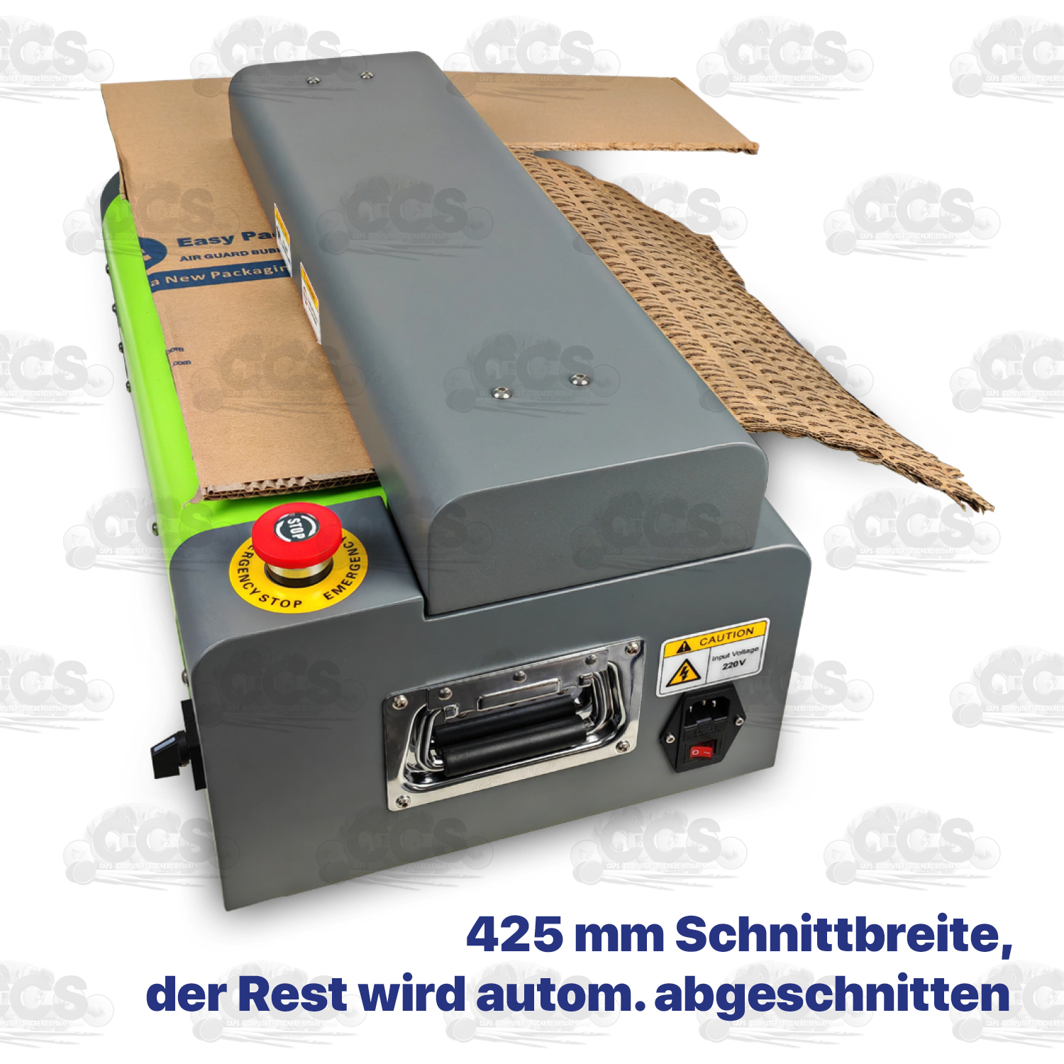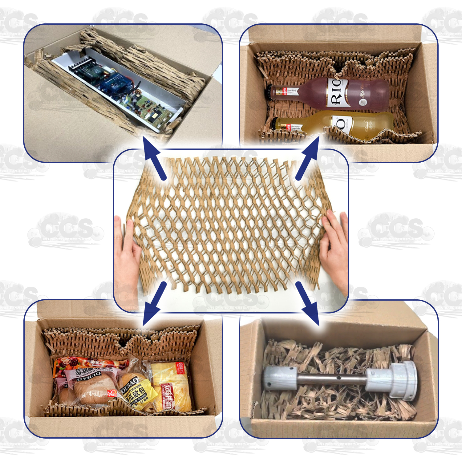 Durch die präzise Schneidetechnik wird die Kartonage in Wabenform geschnitten, das Ergebnis ist ein polsterndes Verpackungs- und Füllmaterial.