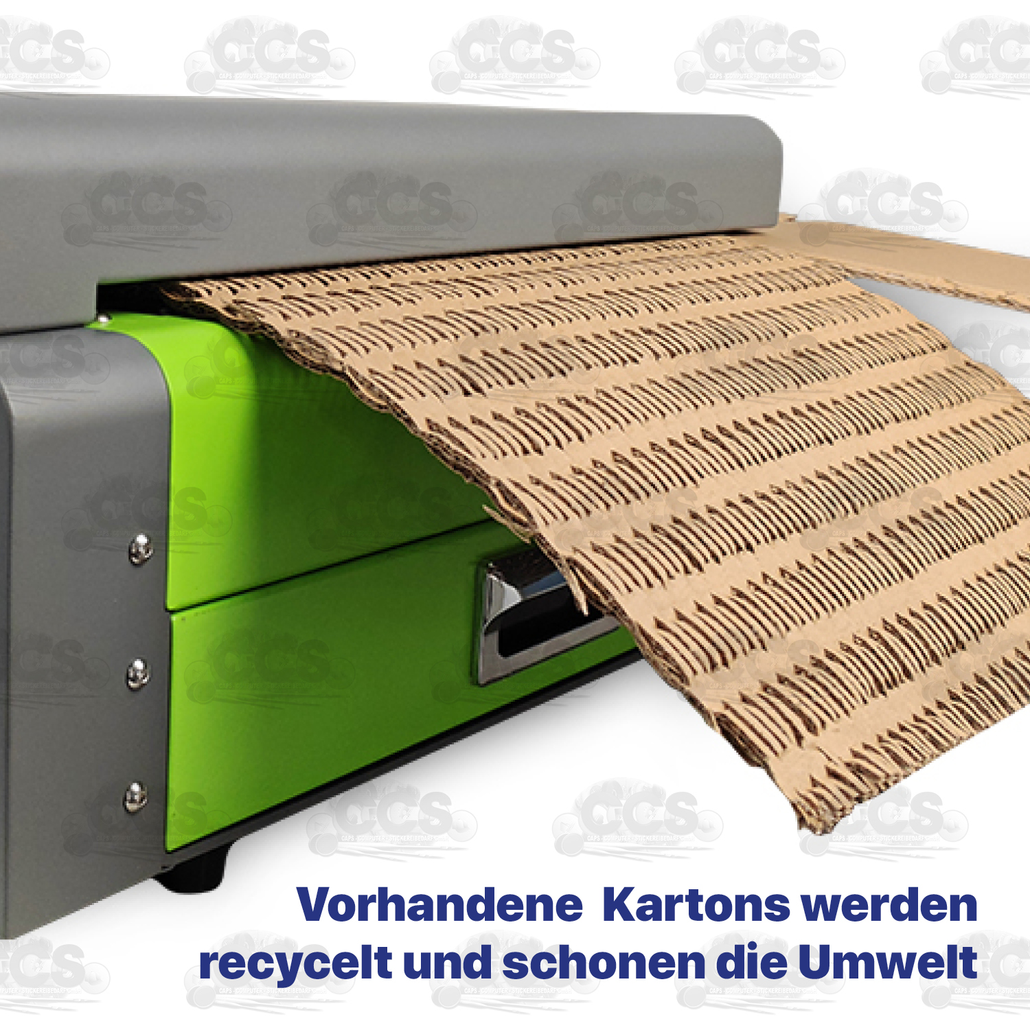 Der Kartonschredder schont die Umwelt durch die Wiederverwendung von Kartonagen. Beschädigte Kartons, die nicht mehr für den Versand geeignet sind und sonst entsorgt werden müssten, können geschreddert und als Füll- oder Verpackungsmaterial verwendet werden. Das schont Ressourcen und Umwelt. Auch der CO2-Fußabdruck wird reduziert.