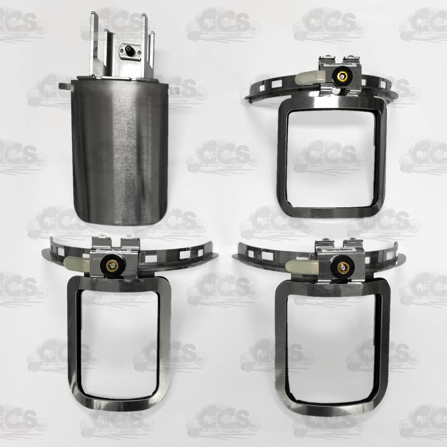 Rahmen zum Besticken von Brusttaschen, hierbei muss die Brusttasche nicht vom Textil abgetrennt werden; Im Lieferumfang enthalten: Einspannvorrichtung, drei verschiedene Taschenrahmen (ca.-Angaben): 63 x 95 mm, 76 x 95 mm, 89 x 95 mm; kompatibel mit Toyota ESP9000, ESP9100, sowie EXPERT-, RiCOMA- und Tajima Stickmaschinen; Achtung: Das Rahmenset funktioniert ausschließlich in Verbindung mit der Kappenstickeinrichtung.