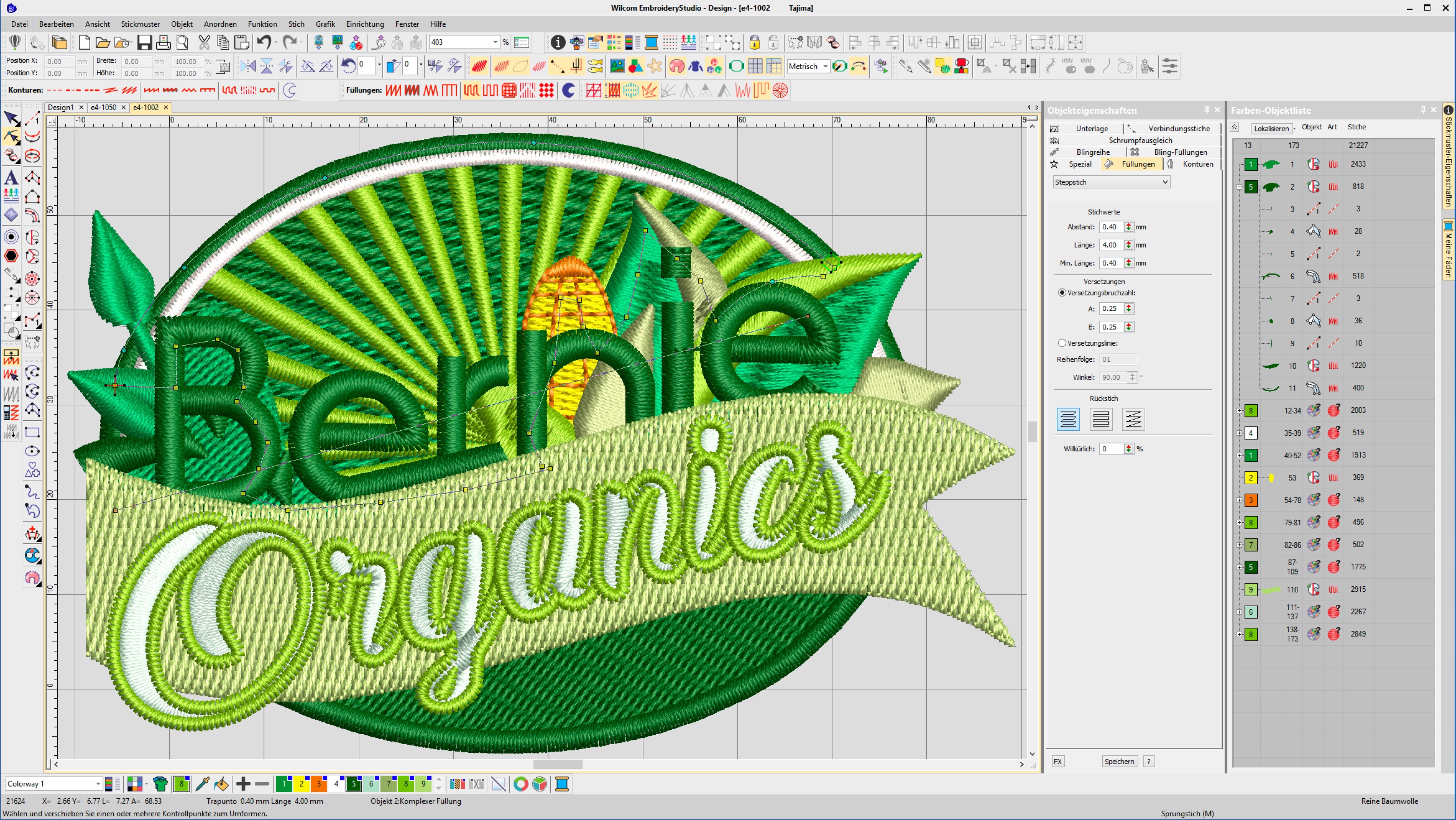 - direktes Importieren einer Grafik mit Wilcom, Bearbeitung der Grafik