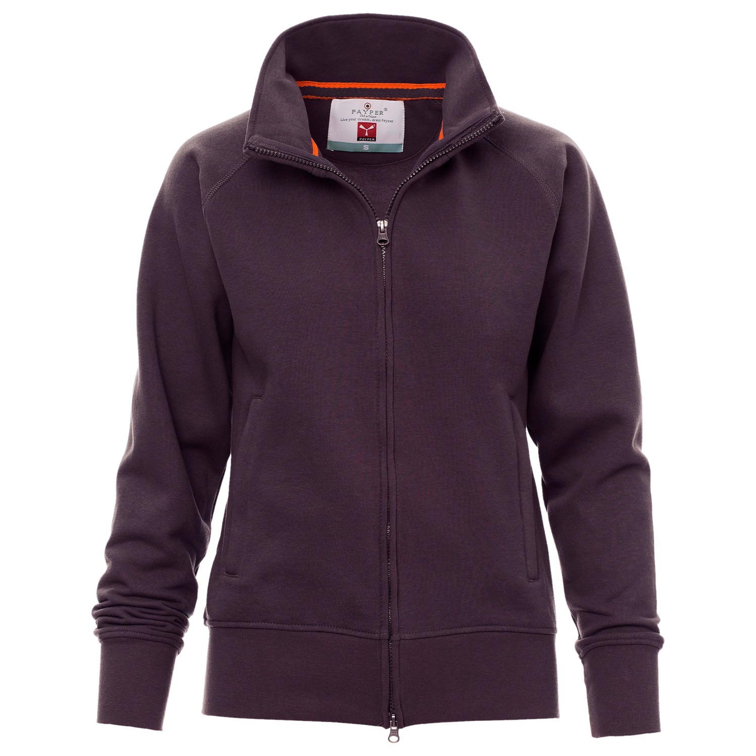 Damen-Sweatjacke, durchgehender, verdeckter 2-Wege-SBS-Reißverschluss aus Kunststoff mit Metallschieber, Raglanärmel, 2 Taschen mit verdeckten Reißverschlüssen, elastischer Feinripp an Ärmeln und Taille, verstärkte Nähte.