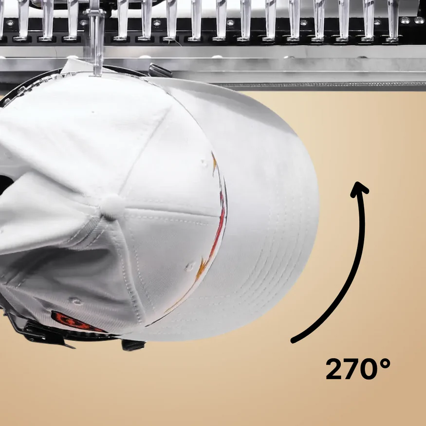 - Neu entwickelter kleiner Näharm garantiert eine bessere Stickqualität auf Kappen und anderen kleinen Textilien