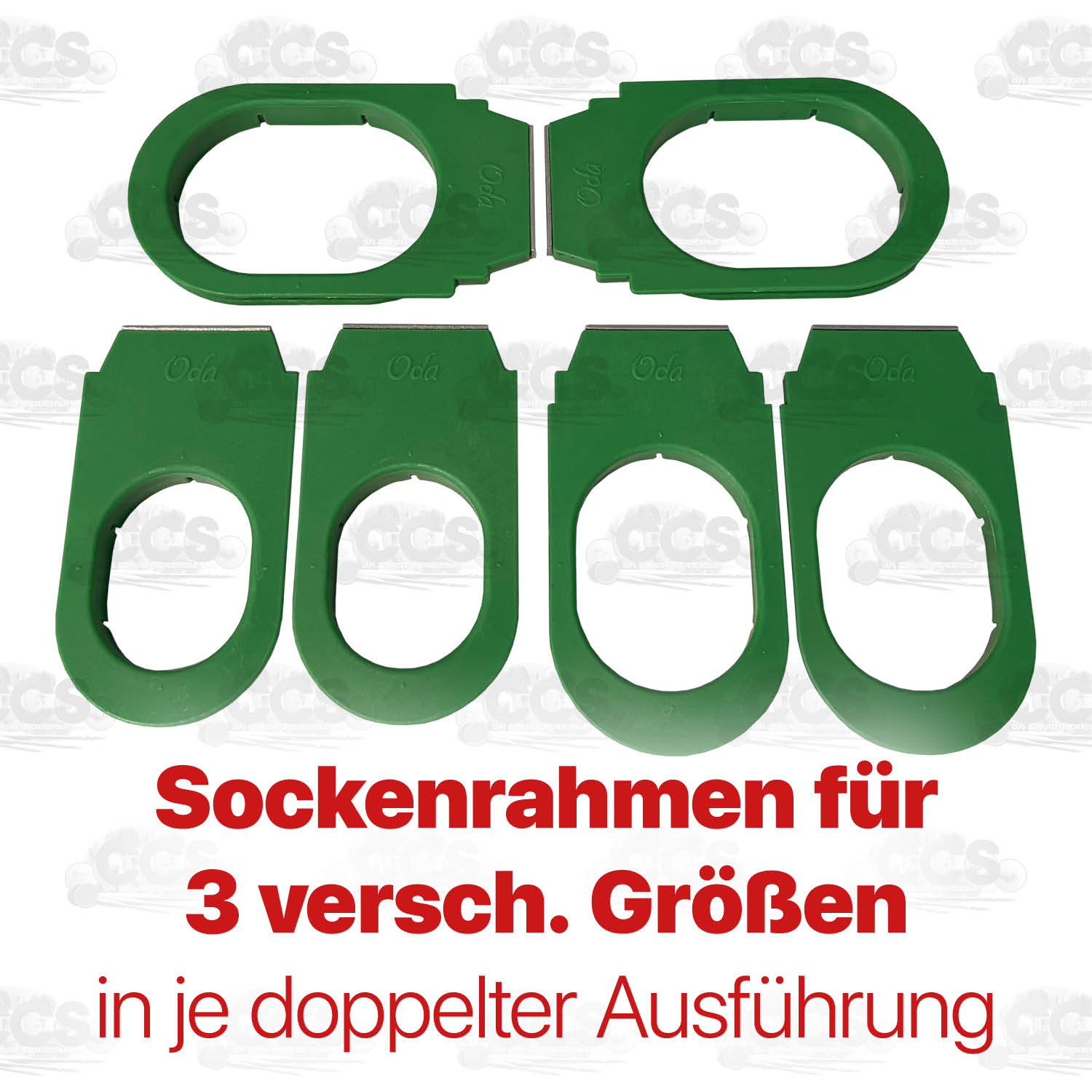 - Drei verschiedene Größen der Sockenhalter (Erwachsene und Kinder) jeweils im Doppelpack. Somit wird eine Socke in der Maschine bestickt, und zeigleich schon die Nächste vorgespannt.