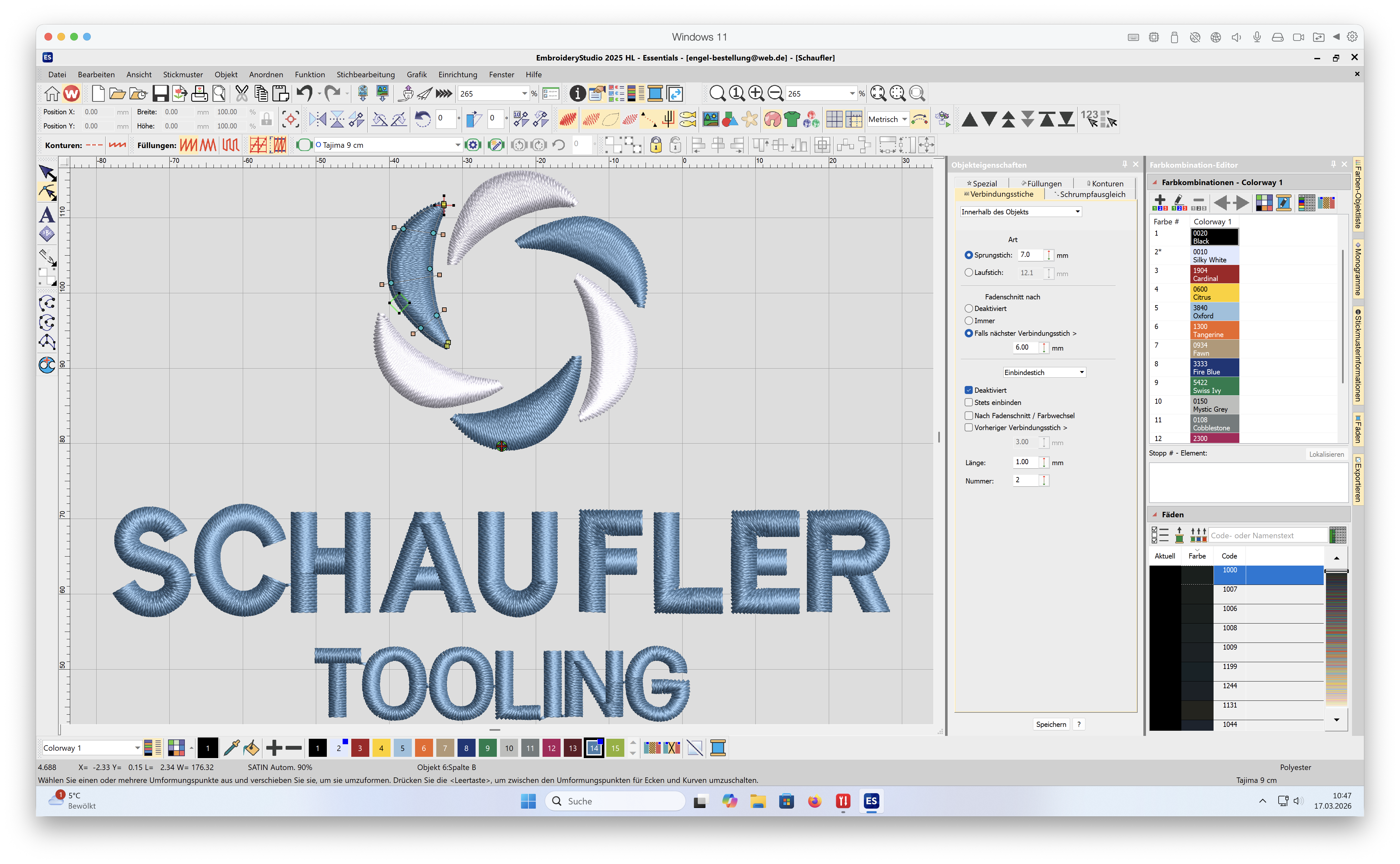 EmbroideryStudio 2026 ESSENTIALS bietet die grundlegenden Werkzeuge zum Erstellen und Bearbeiten von Stickdesigns. Es unterstützt mehrere Farbpaletten und bietet einen einfachen grafischen Digitalisierungsansatz. Basierend auf der renommierten Stichverarbeitungstechnologie von Wilcom ermöglicht es die schnelle und einfache Erstellung von Stickmustern in kommerzieller Qualität.