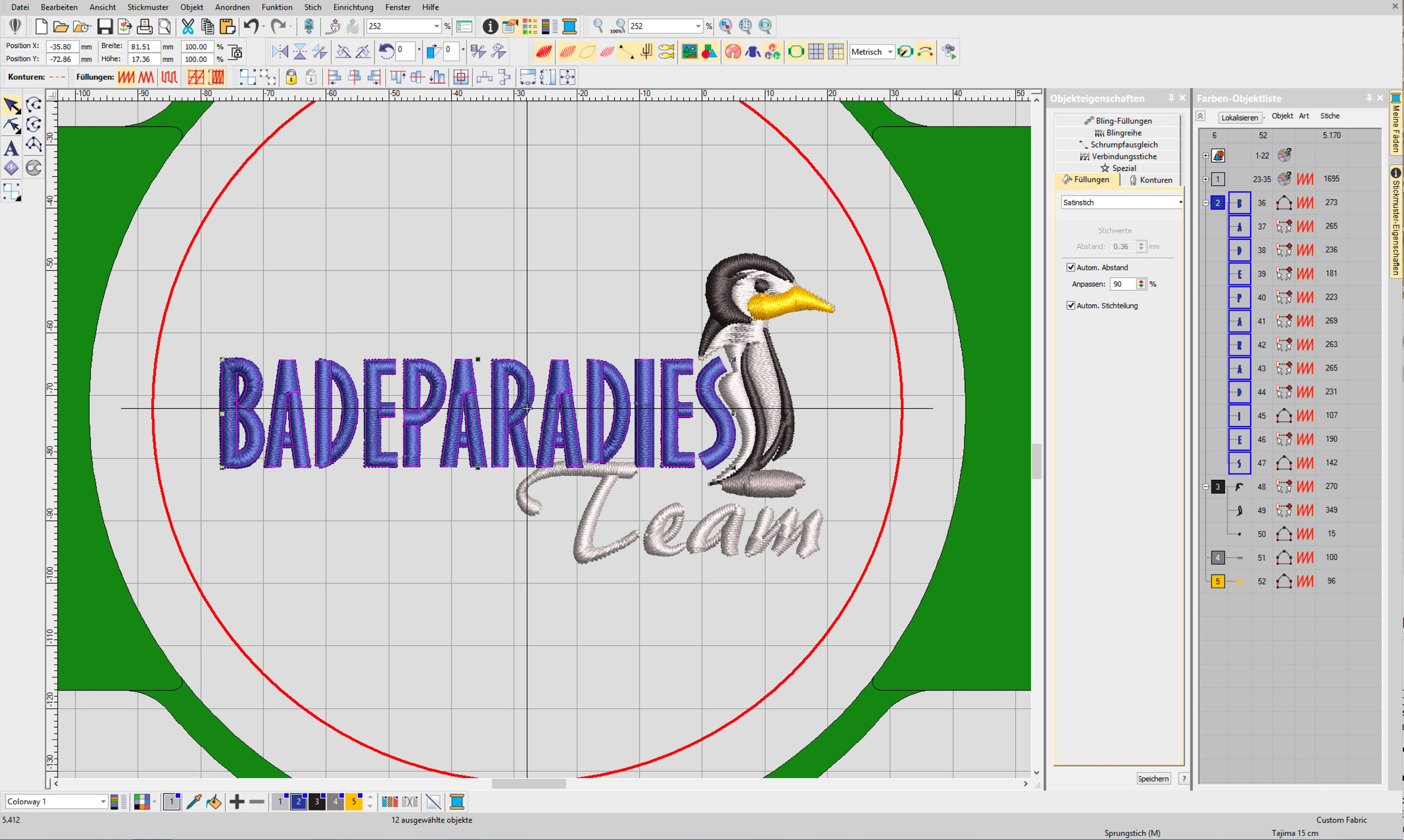 - Erstellte Konturen umwandeln in Kontur-, Satin- oder Steppstiche