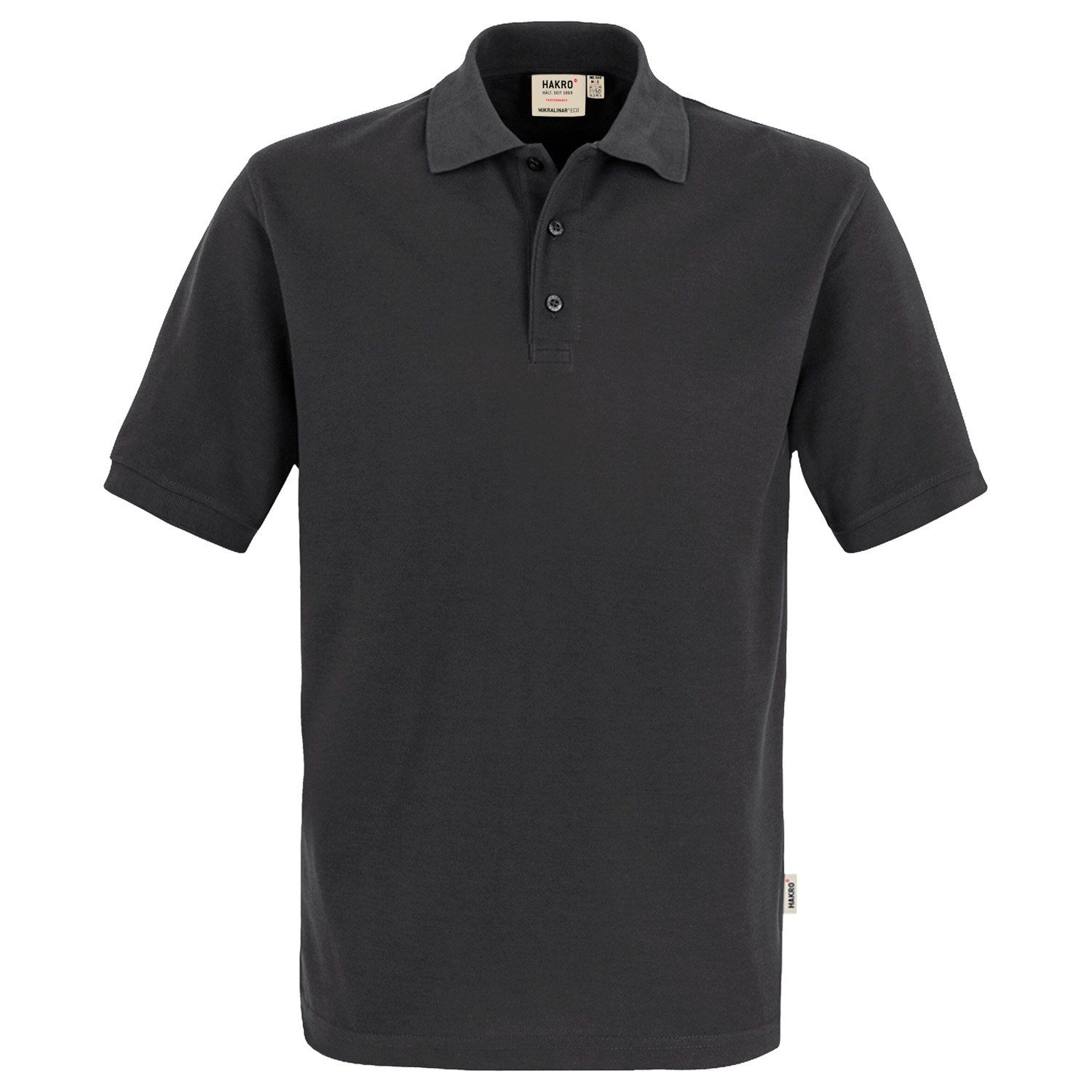 made of soft, particularly easy-care and functional piqué made of MIKRALINAR® ECO, the HAKRO performance material mix of high-quality cotton and receycled polyester certified according to the GRS standard