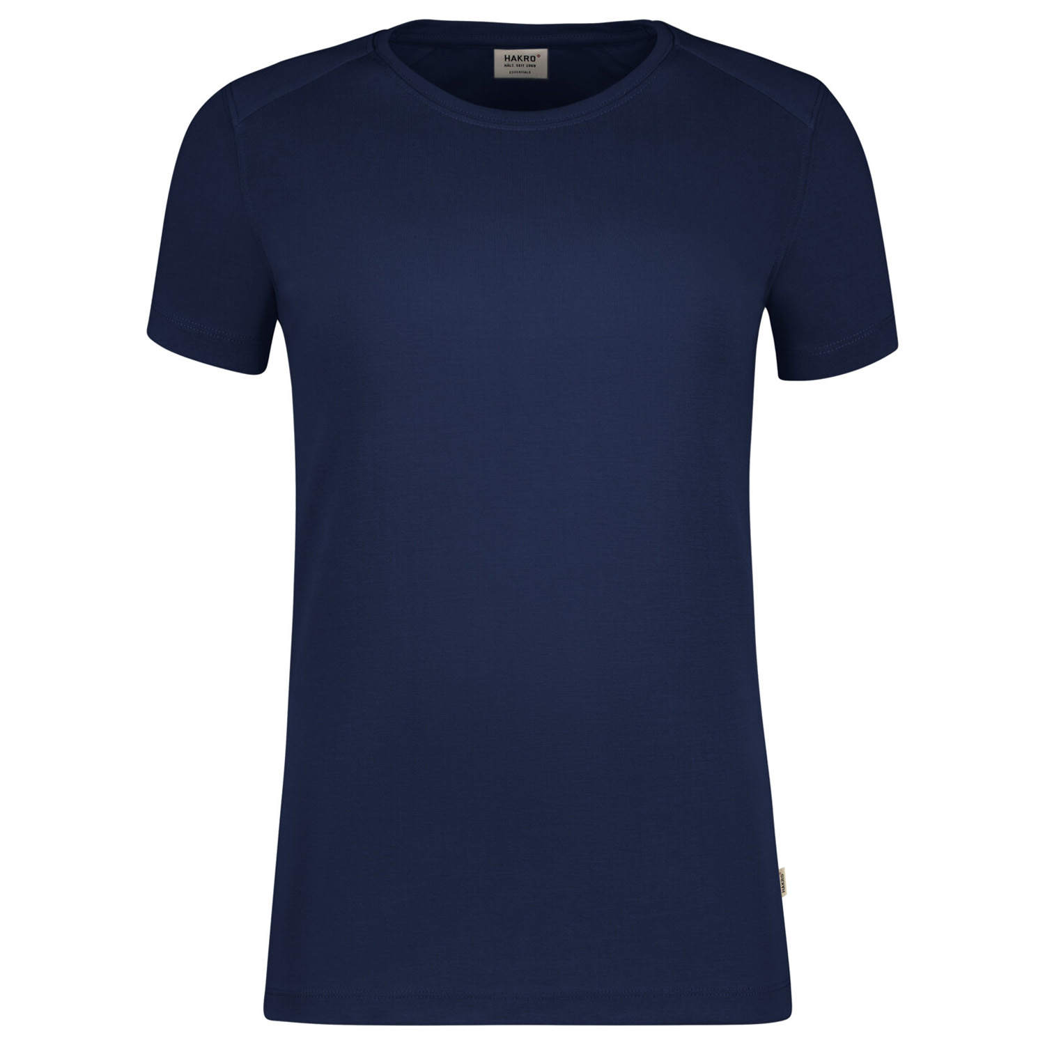 woven HAKRO neck label made of high quality warp satin with soft, ultrasound cut band edges for highest wearing comfort and woven HAKRO flag label on the left side seam