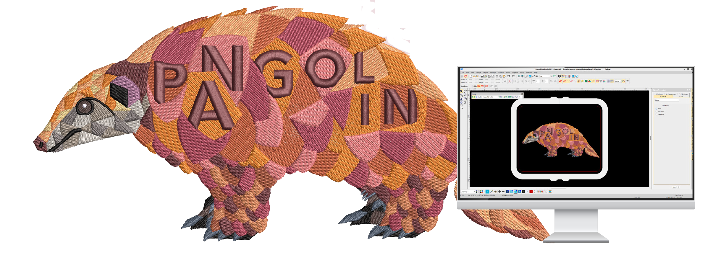 - NEW: View and export high-resolution embroidery designs as virtual decorations for a realistic printed embroidery effect.